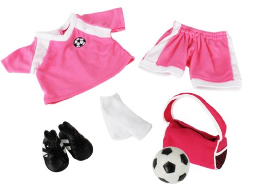 -. Title : Doll Clothes for American Girl Dolls: 6 Piece Soccer Star Outfit - "Dress Along Dolly" (Includes Shorts, Shirt, Socks, Cleats, Sports Duffle Bag, and Soccer Ball)