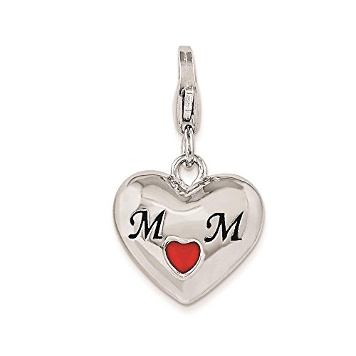 -. Title : 925 Sterling Silver Enameled Heart Mom w/ Lobster Clasp Charm - Amore La Vita Collection
