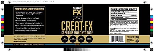 100% SAFE, ALL NATURAL ENERGY SUPPLEMENT—NutraFX’s micronized creatine powder is specially formulated from 100% pure high-quality ingredients to deliver ATP to muscle cells and supply energy during workouts, resulting in an increase in physical performance and muscular strength, size, and endurance