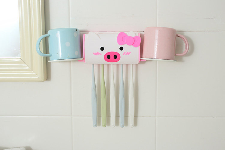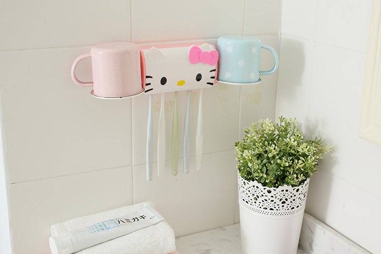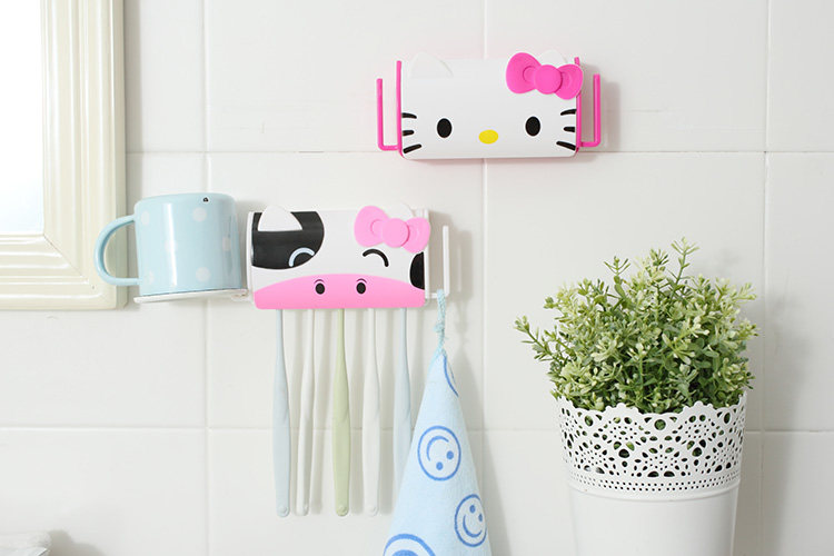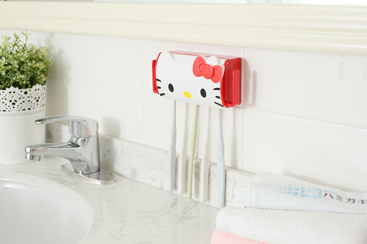 可爱卡通kitty牙刷架吸壁式浴室卫生间套装吸盘无痕贴防尘牙具座