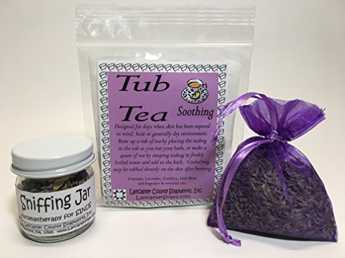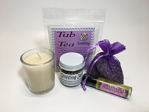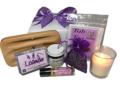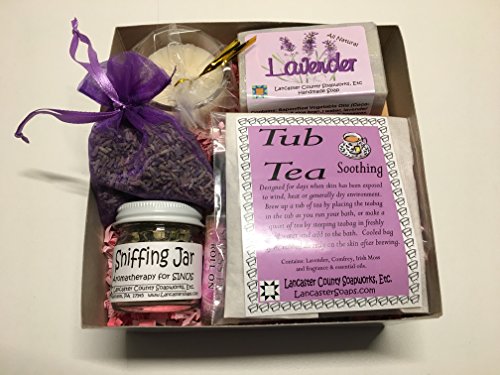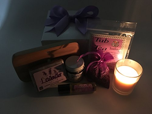 The perfect gift for Mom! You will feel wonderful and she will feel so loved to get this gift box from you! A wonderful gift box tied with a pretty Lavender Bow and filled with the soothing fragrance of Lavender! From Handmade, Small Batch Soap to Fragrant Herbs, Lavender Essential Oil, a Vanilla Scented 18 hour candle and even a soap dish for your fragrant Lavender Soap! The fragrant Lavender products in this gift box are made in Lancaster County, Pennsylvania by two women that love herbs, soaps, essential oils and all natural fragrances. The candle is made in Canada from 100% sustainable plant based wax. The scent comes from essential oil and the jar is made in the USA!Feature