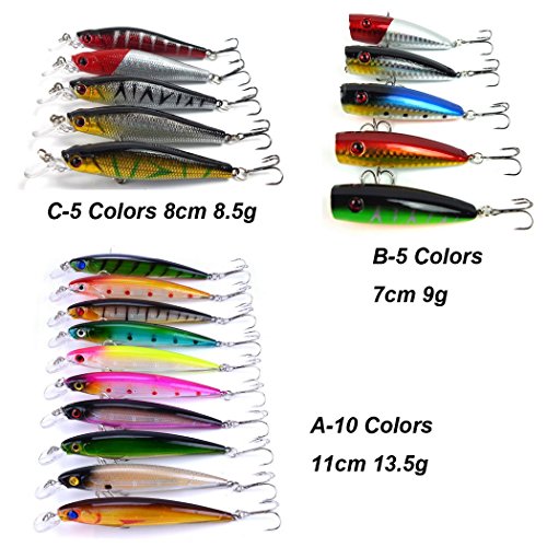 -. Title : Fishing Lures Set Aorace 20pcs/Lot Fishing Baits Kit Minnow Popper Lures 3 Models Mixed For Saltwater Freshwater Trout Bass Salmon
