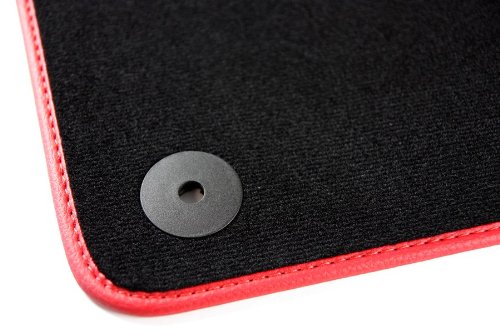 -. Feature : 'Edition GTI' Fußmatten passend für Volkswagen Golf 4 ab Baujahr 1997 - 2003 (alle Modelle) / Dicker, flauschiger Velours aus 100% Polyamidfaser mit 680g/ m² Fasergewicht / Wasserfeste Rückseite und originales Befestigungssystem in den vorderen Fußmatten / Bandeinfassung sowie dekorative Ziernähte in Rot, Hersteller Originalqualität! (Lagerware) / Komplett alle 4 Fußmatten: Fahrermatte, Beifahrermatte, zwei hinteren Matten