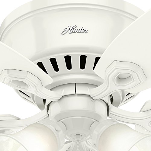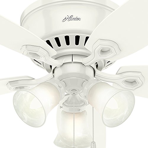 The builder fan is a mainstay in the hunter product line and now rooms with low ceilings can showcase one of our best-selling fans! the casual, traditional style will compliment your room without overpowering it. With 52-inch blades, a variety of finish options and the ability to install with or without the light kit, this fan is flexible enough to fit almost any large space you choose.
