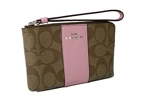 (Coach)/Accessories/Handbags/DIRECT FROM USA/New Coach C Signature Logo Wristlet Hand Bag Purse Khaki Blush Pink Corner Zip