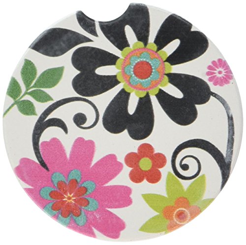 -. Feature : CounterArt cup holder coaster with decorative transfer print / Standard size is designed to fit cup holders in most cars, vans, boats, SUVs and trucks / Durable stoneware construction allows for continuous absorption of condensation / Design incorporates a convenient finger slot on the side for easy removal / Makes a great gift, stocking stuffer or party favor