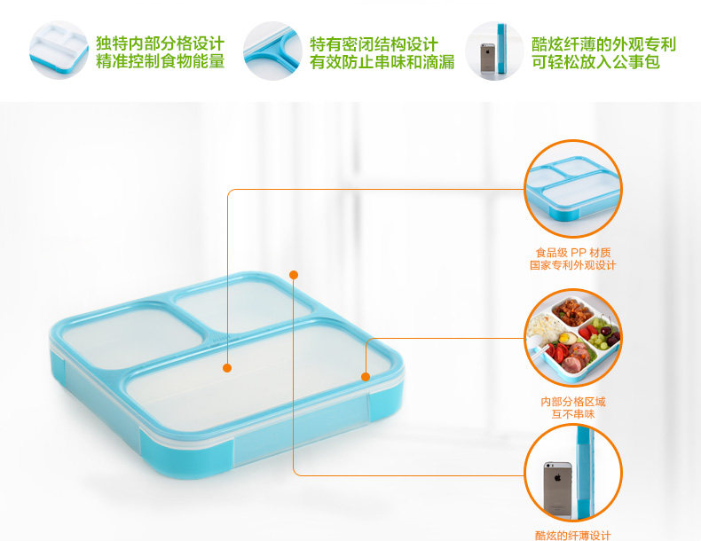 ?日式超薄饭盒密封分格学生便当盒微波炉专用白领便携饭盒