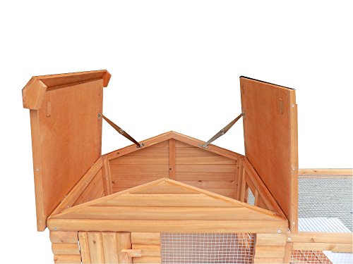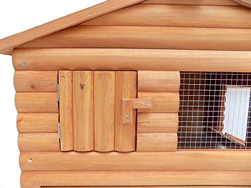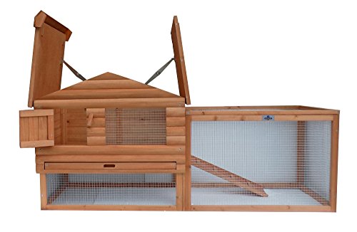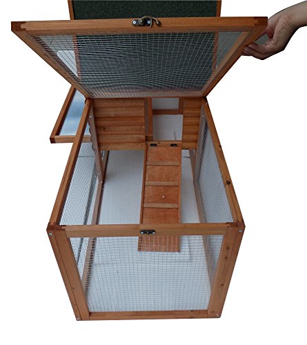 -. Feature : Suitable for rabbits, ferrets, and guinea pigs / Furniture-grade wood with waterproof antifungal finish / Double-level hutch / Built-in open run area / heavy duty steel wire