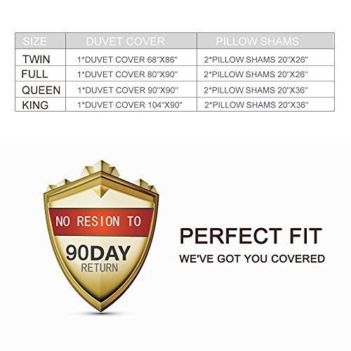 Zipper have been upgraded and moredurable If your Zipper was broken, pleasecontact us. ? BLESSLIVING Stylish Printing Duvet CoverSet: 1 Duvet Cover 2 Matching PillowShams Comfortable: Microfiber duvet cover set is designed to resist wrinkles andpilling, it will stay like new through many machine wash cycles. Strong anddurable, yet luxuriously soft, duvet cover offers all the advantages ofstandard cotton duvet covers at less cost! Convenient: Duvetcovers stay on the duvet and function like sheets -- they absorb moisture anddirt, protecting the duvet itself so you can strip just the cover off and washit. Package Includes 1x Duvet cover (Without Comforter) 2x Pillow shams Size Information Twin size Duvet cover: 68" x 86" Pillow sham: 20" x 26" Full size Duvet cover: 80" x 90" Pillow sham: 20" x 26" Queen size Duvet cover: 90" x 90" Pillow sham: 20" x 36" King size Duvet cover: 104" x 90" Pillow sham: 20" x 36" Attention: ?All dimensions are measured manually with deviation ranged at 1-1.5inches. Guarantee We think you're satisfied the duvet cover setslike us! If you are not satisfied with our products, unconditional refund isacceptable within 90 days.? 0 |