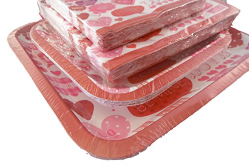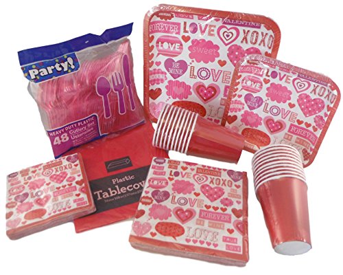 - Forever Love Sweethearts Paper Goods Party Bundle - 8 Items: Paper Plates, Napkins, Paper Cups, Cutlery, and Table Cover