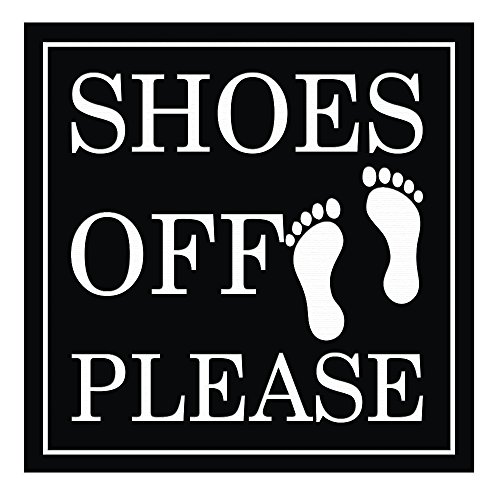 SHOES OFF PLEASE Square Wall Door Sign - Black (Large)