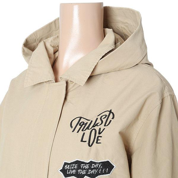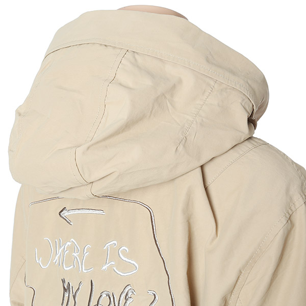 2018년 봄 신상품이며 프린트가 있는 스타일의 야상 점퍼이며 가슴 부분 등판부분에 프린트를 주었으며 허리부분에는 끈 줄임기능이 있어 조여서도 착용가능하며 끝단부분에는 굴림으로 되어 있어 활동성이 좋으며 모자는 탈부착이 가능한 스타일의 점퍼이며 착용자의 움직임에 따라 활동성이 좋은 스타일의 야상 점퍼 | |
