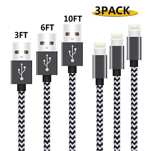 [Assorted Lengths ] : 3 pack Lightning Cables are very useful for difference occasions.The bundles of the USB cable make your life more convenient.3FT standard size will be just fine for normal use at home and office. 6FT and 10FT length is optimized for using with hard-to-reach USB ports and out-of-sight wall chargers.