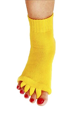 -. Feature : TOE SEPARATOR SOCKS: Great for toe alignment, bunions, hammer toes and overall foot pain. Prevent big toe hallux from exstrophy. / BENEFITS: Helps prevent foot cramps and promotes healthy blood circulation. Plush, soft material is perfect for those with diabetes, menopause, or swelled feet. / TOE MASSAGER & STRETCHER: Toes fit snug through the holes, or "separators," and stretched for much-needed stress relief on your feet. Ladies, you can even give yourself a mess-free pedicure while your toes are resting comfortably in these socks! / WEAR THEM ALL THE TIME: Keeps feet warm so you can even wear them while you're lounging around the house, cooking, or even sleep in them for a comforting, relaxing night's rest. Wake up with happy feet! / One size fits women shoe sizes 6-10, unisex, cotton blended, breathable, machine washable (air dry, don't put in the dryer), cushioned, soft, warm.