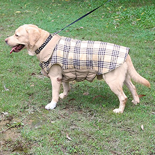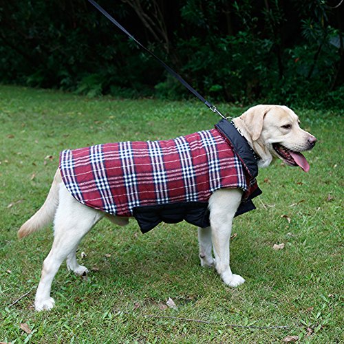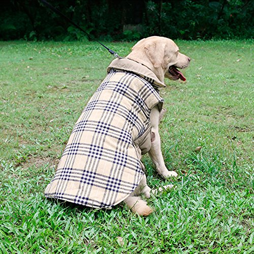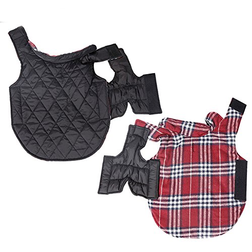 -. Feature : COLD WEATHER DOG COAT: Keep your dog warm and cozy with the overcoat, fashion British style plaid designed cold-weather jacket. It is constructed with sturdy, durable and breathable materials. / MADE OF WARM, COMFORTABLE & DURABLE MATERIAL: Lightweight dog cold weather coat is made of polyester and cotton, yet comfortable. Soft cotton material with fill. Perfect for a brisk evening walk in the city or weekend adventure in the mountains. / WARM INNER LAYER: This vest style jacket provides excellent coverage and features a recycled polyester interior fleece layer designed to keep body heat in. This design enables your dog to stay comfortable when venturing out into the cold. / DESIGN CREATIVE: Exquisite stitching, easy elastic, easily put on and take off.comfortable belly part, warm fleece lining. Perfect gift for your dog in winter cold weather. / SIZE & MEASURING: Dog vest is available in 7 sizes (please find size chart in product description). Choose the right size based on your dog's girth. Girth can be determined by measuring around the widest part of the rib cage. For in between sizes, choose the larger coat for more coverage.
