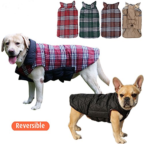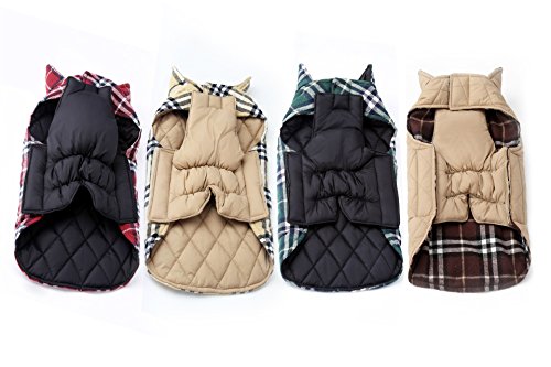 -. Title : Pet Dog Jacket Vest Cozy Waterproof Windproof Snowproof Reversible British Style Plaid Dog Coat Winter Warm Dog Apparel with Furry Collar (XS - 3XL )