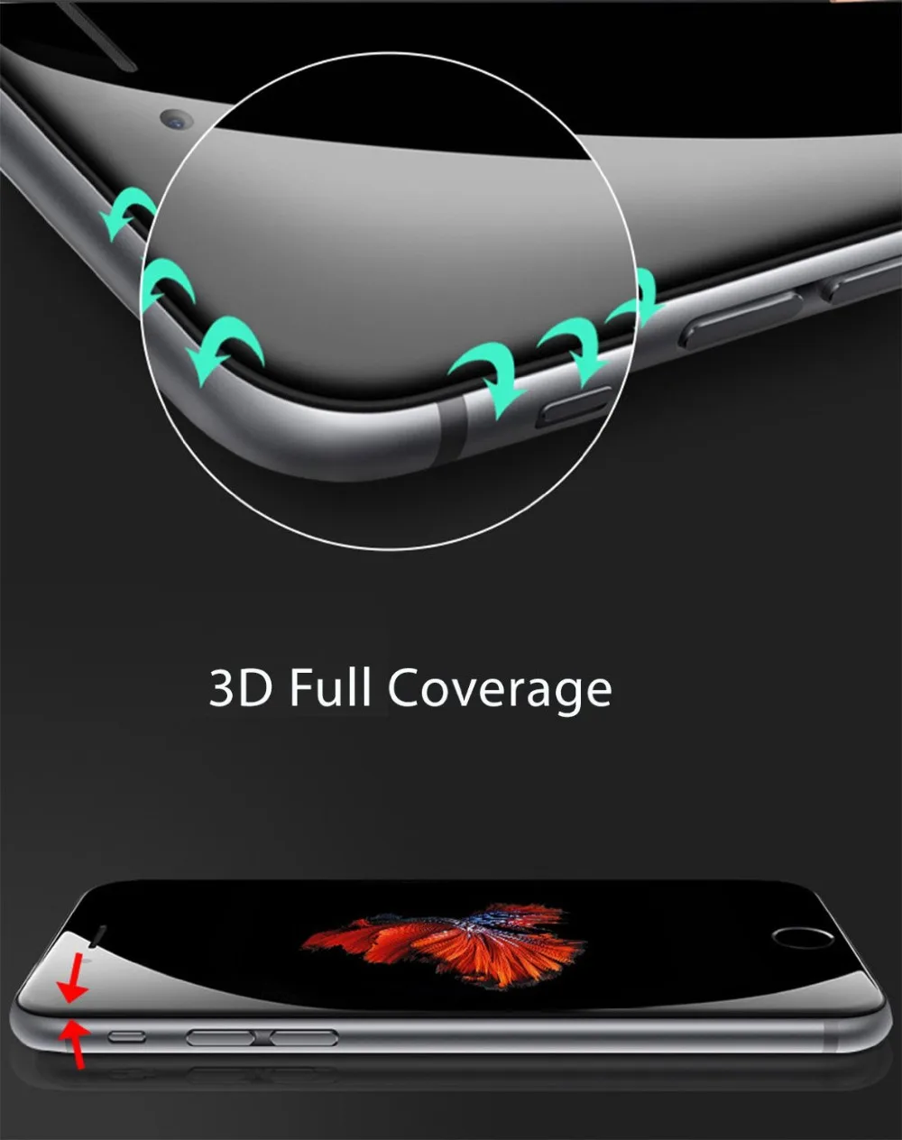 Size:for iphone 6/6s plus 3d full cover tempered glass screen protector