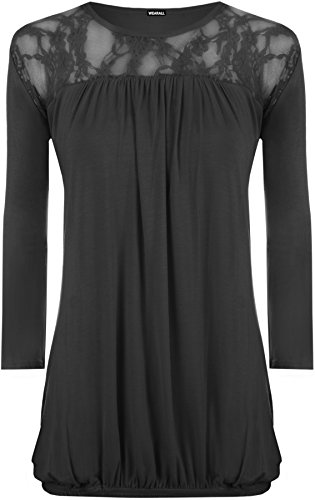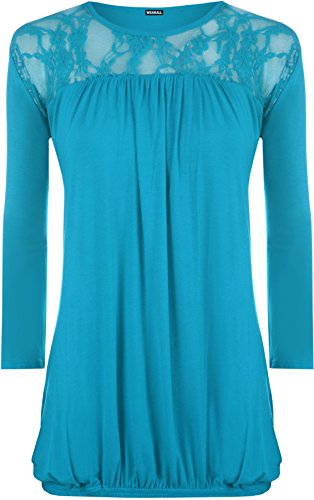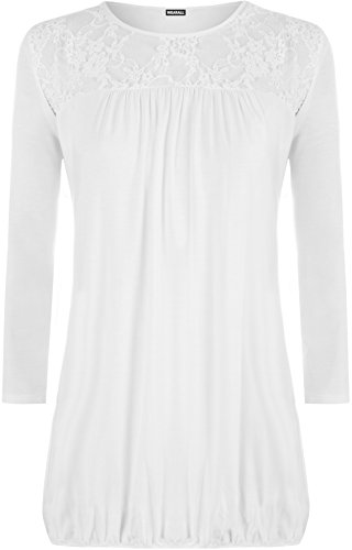 Studio : WearAll Publisher : WearAll Binding : Apparel Product Description Add an attractive lace round neck top to your wardrobe, the Leah lace top features ¾ sleeves and pleates below the lace, providing a lovely flare effect with an elasticated hem which hints at your curves. Constructed from a lightweight viscose fabric, this piece is both stylish and comfortable. Opt for an easy-chic day look with a pair of casual jeans or glam it up a bodycon skirt, seamlessly transcend from day to night.