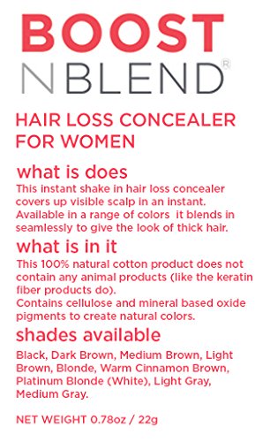 GET YOUR CONFIDENCE BACK with thee tiny hair-like micro fibers made from cotton. Cotton fibers shake on and cling to each hair shaft making it look up to ten times thicker. Stays on until you next wash your hair.This is the hair loss product women have been waiting for. Our fibers have a superior cling factor due to the product being made from cotton.