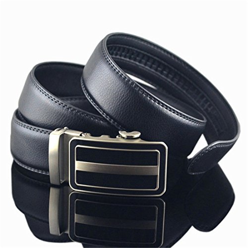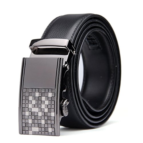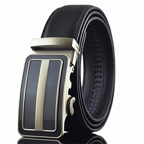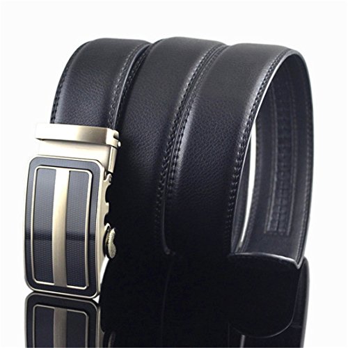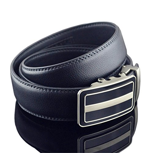 Belt Features: (a)The belt is sleek and clean, and provides a perfect fit for everyone. (b)plz buy one size larger than your waist,oversize for special demand (c)The tip of the belt inserts into the ratchet belt buckle, where a locking mechanism holds the belt in place from the back. (d)To remove the belt, just press the small metal lever on the bottom of the buckle, and the belt slides out of the buckle.