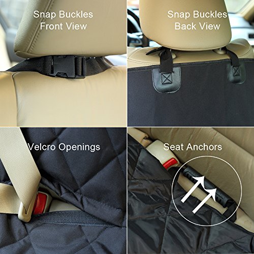 -. Feature : Black Pet Car Seat Cover: 54"W x 58"L: Designed for the backseats of All STANDARD cars, trucks & SUVs. Easily convertible between hammock and standard bench coverage. Come with a tote bag, you can pack the pet seat cover well with it, simple to pack and easy to carry. / Safety Materials:Designed with COLOR-FAST material and premium components FREE OF AZO DYES and HEAVY METALS such as lead, arsenic, mercury, etc.Also tested to withstand EXTREME temperatures so you will never have to worry about damage to your vehicles anymore. / WaterProof: Tripled Layered Waterproof PU for Extra Comfort and high quality heavy-duty polyester for durability. / Very Easy To Install - Quilted pattern for high-end feel.Includes built-in rubber nonslip backing and seat anchors to prevent seat cover from sliding around. Built-in Velcro Openings for your Seatbelts.Just snap the buckle straps around your headrests, then tuck in the seat anchors, that's done! / Very Easy To Clean - Machine washable: Use gentle cycle.