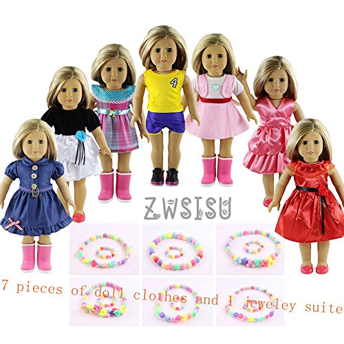-. Title : ZWSISU Children gift 7 Outfits American Girl Doll Clothes +1 jewelry suite Fits American Girl Doll, Our Generation, Journey Girls Dolls