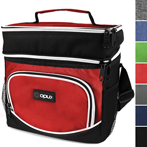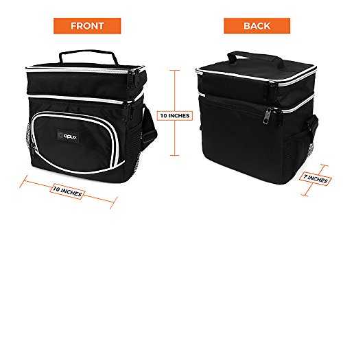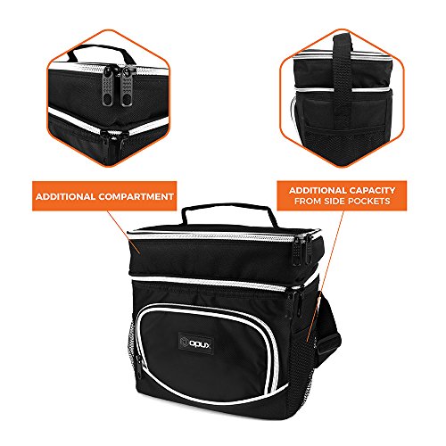 -. Title : Premium Insulated Dual Compartment Lunch Bag for Men | Thermal Double Deck Reusable Lunch Tote with Shoulder Strap, Bottle Holder, Leakproof Liner | Medium Lunch Box for Work, Office by OPUX