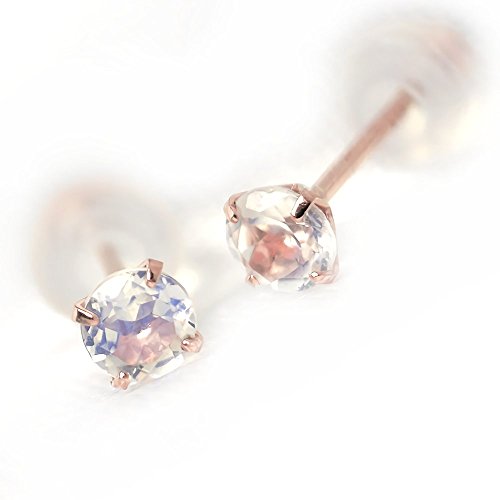 -. Title : K10 ピンクゴールド3mm ピアス スタッドピアス 両耳用ペア 6月誕生石ブルームーンストーン