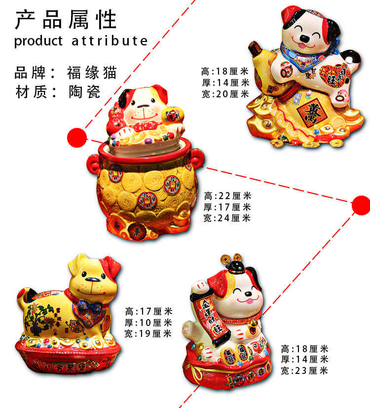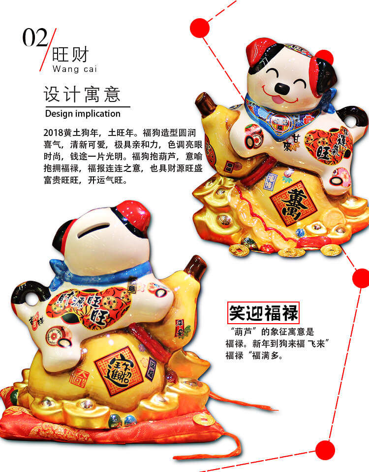 创意狗年吉祥物过年送礼年货礼品陶瓷招财摆件卡通存钱罐新年礼物