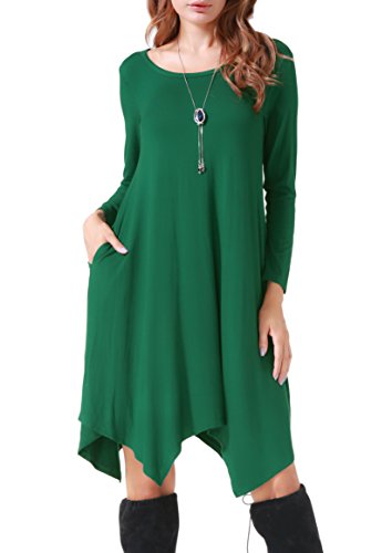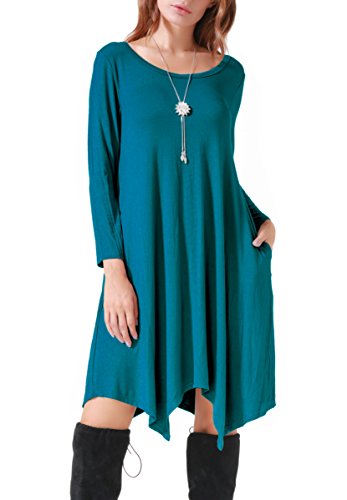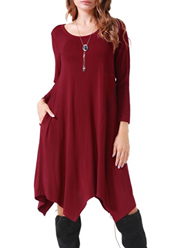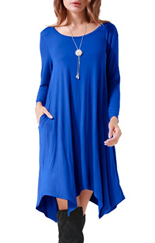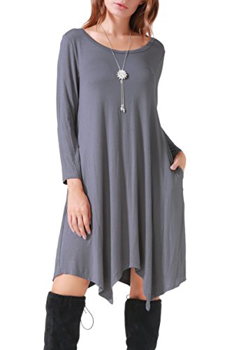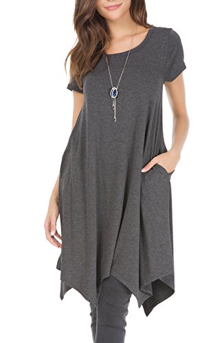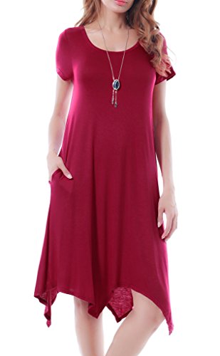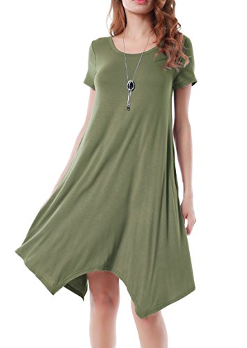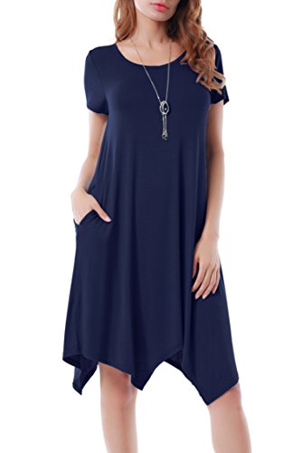 Invug Women Casual Loose Fit Soft Stretchy Crewneck Short Sleeve Pockets Swing T-shirt Dress