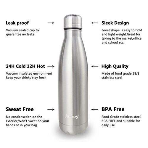 Jearey high quality water bottle could keep beverage cold for 24 hours and hot for 12 hours.