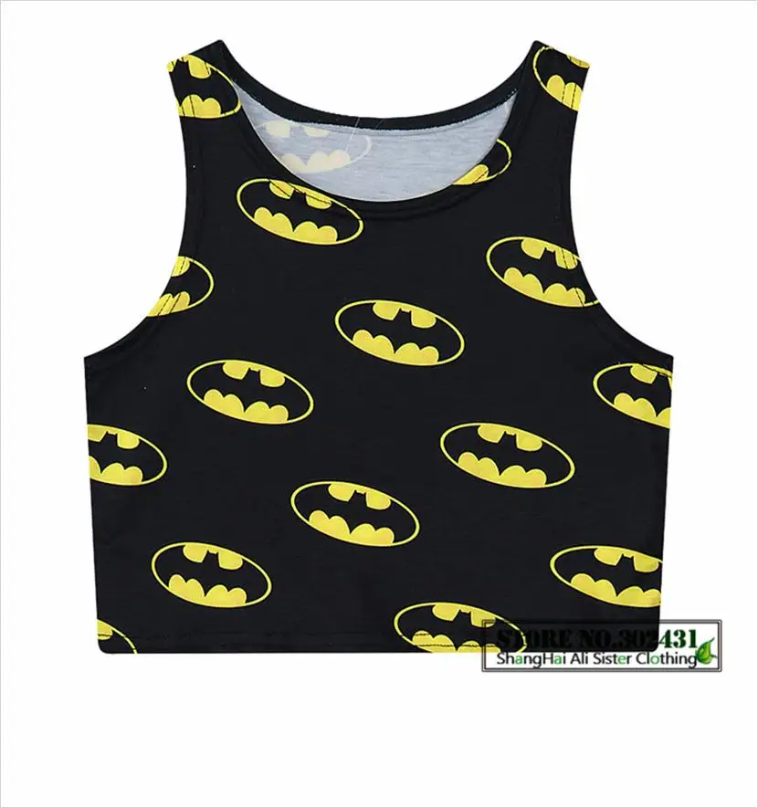 new style 1:2016 black sexy women vest cratoon Batman 3d crop tops
