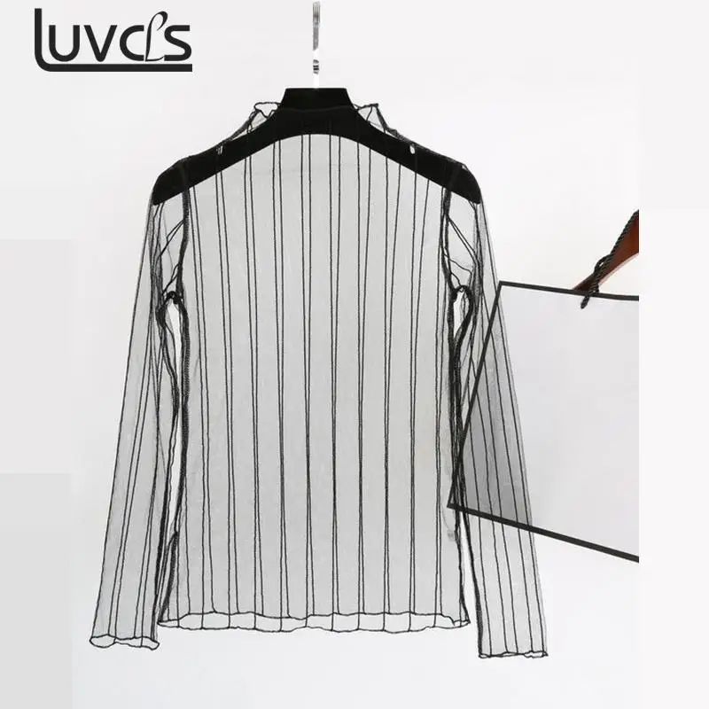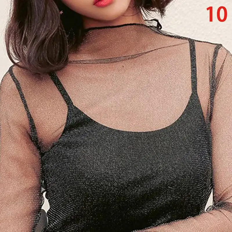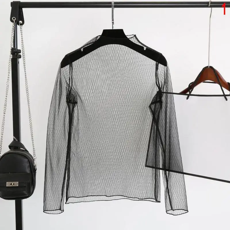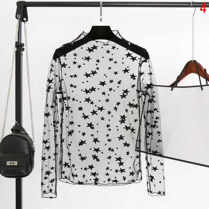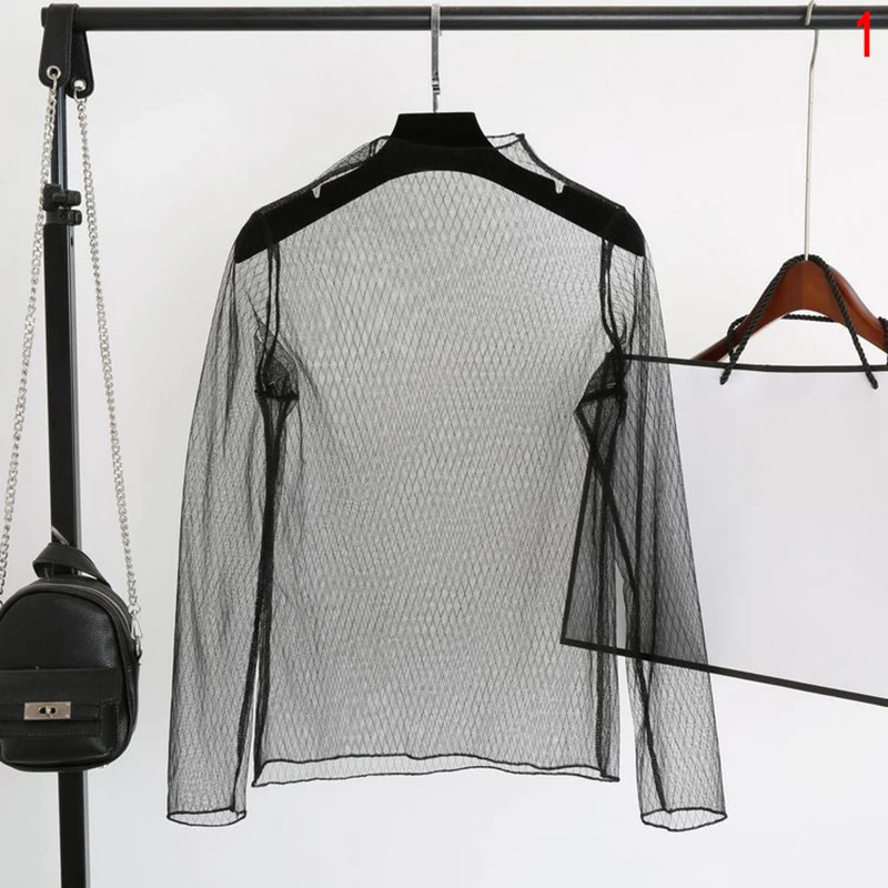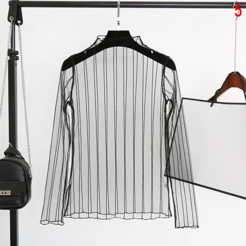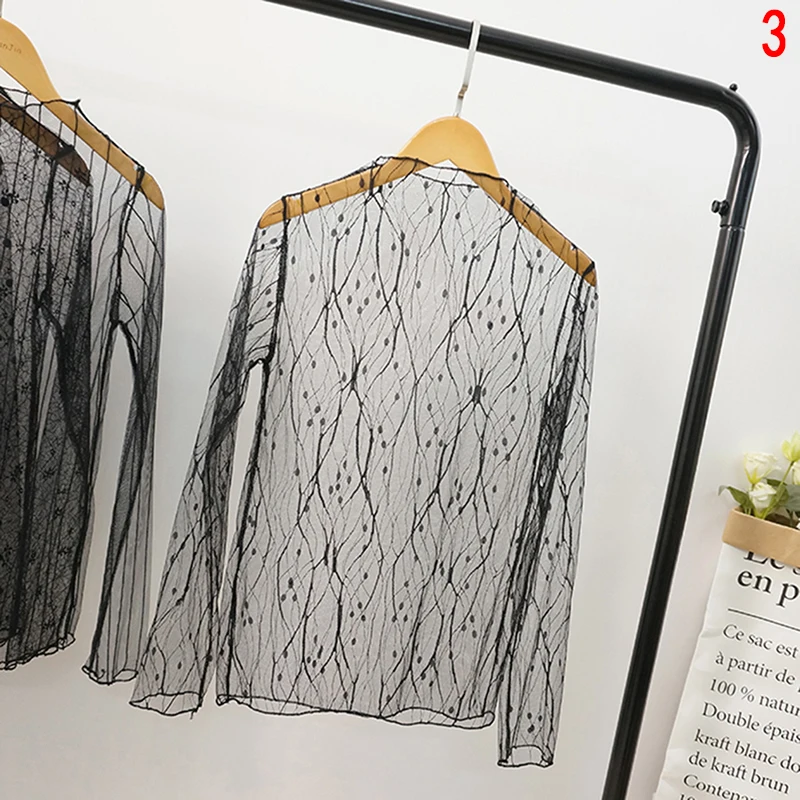 Sexy Transparent Shirt:Women sheer long sleeve blouse