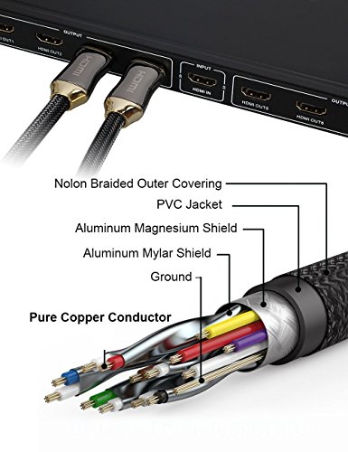 Studio : Unitech Publisher : Unitech Binding : Electronics Product Description Made of high quality components and by world-class factory, this 5ft cable only charge at a reasonable price. 24K Gold-plated Connectors High-Speed HDMI Cable features 99.996% and high purity oxygen-free copper, corrosion-resistant connectors that deliver optimal signal transfer with lower distortion at the point of contact. High quality picture, Sound, and Ethernet in 1 Cable- high quality PVC, Nylon Mesh outer layer and shielding, which defends against outside interference, helping to maintain the integrity, purity of the digital signal and longer service life. The cable is flexible and can be easily twisted so that it will save space. *Ultra-high speed, supports bandwidth on 24 G * High-resolution and refresh rate, supports 60 Hz @60fps *Pure digital video, supports 4K Ultra-HD * Multi-channel audio connection, delivers clear and vibrant video * Supports 48-Bit deep color, HDCP compliant True HD-Dolby 7.1 * Supports 3D content and Audio Return Channel that combines both audio and video 0
