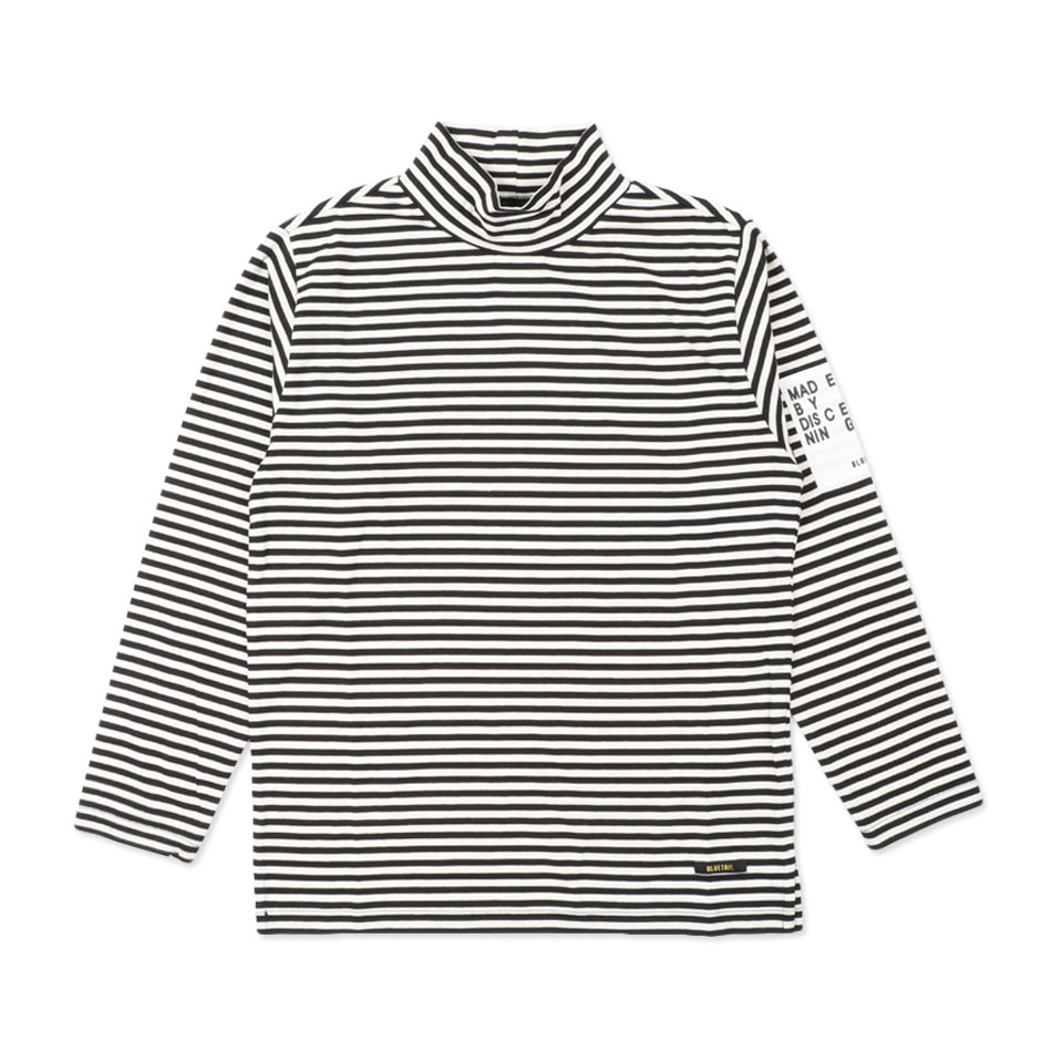 착용 시 목의 반 정도로 올라오고 품과 기장이 넉넉한 오버핏 형태의 롱슬리브 터틀넥 티셔츠 입니다.