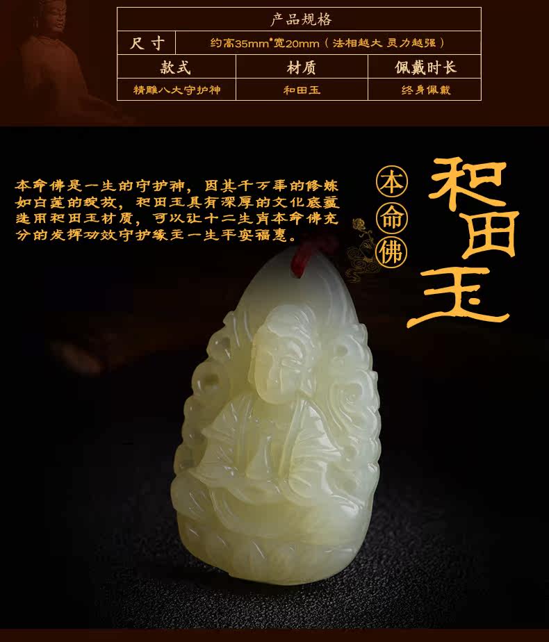 开光 和田玉虚空藏菩萨吊坠 生肖属牛虎本命佛守护神男女项链挂件