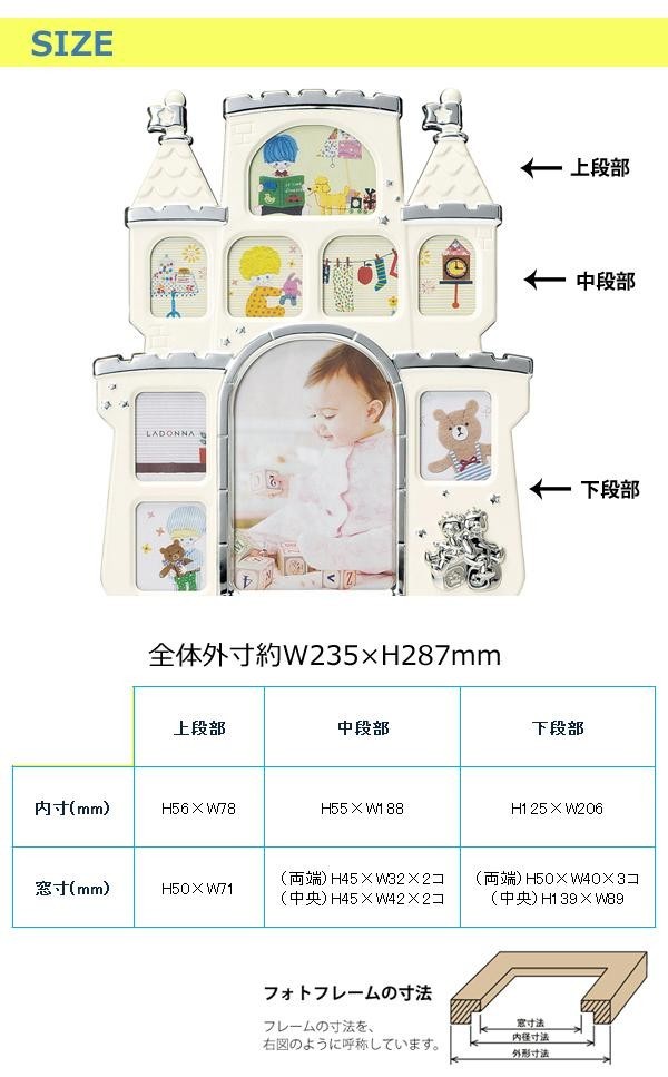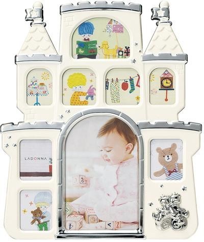 たくさんの窓が並んだお城のフレーム。それぞれの窓に成長をのぞかせて。 製造国:中国 素材・材質:スチール、シルバーメッキ、ペイント仕上:PK・BL・IVのみ 商品サイズ:外寸:約235×287mm 仕様:縦置専用写真収容数:ポストカードサイズ×1枚、ミニサイズ×8枚裏面/カラー:ブラック、素材:MDF・ベルベット ※サプライヤー直送品  ご注文後3~4営業日後の出荷となります【商品名】キャッスルフレーム ベビーフォトフレーム アイボリー・MB56-90-IV