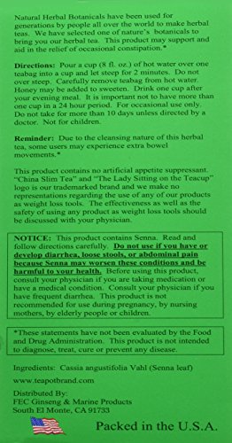 -. Binding : Health and Beauty -. Brand : China Slim -. EAN : 0798527088938 -. Feature : China Slim Tea / Oriental Pure Herbal Tea / Dieter's Delight -. Label : China Slim -. Manufacturer : China Slim -. MPN : NA -. PackageQuantity : 1 -. PartNumber : NA -. ProductGroup : Health and Beauty -. ProductTypeName : HEALTH_PERSONAL_CARE -. Publisher : China Slim -. Studio : China Slim -. Title : China Slim Tea Extra Strength For Men and Women 72 Tea Bags -. UPC : 798527088938