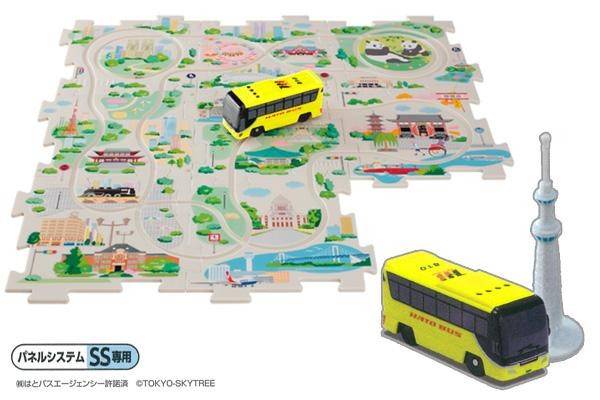 | 8枚のパネルを自由に組み替え、自分だけのコースではとバスを走らせて遊べます!!東京スカイツリー(R)のマスコット付♪ |