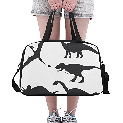 (InterestPrint)/Accessories/Luggage, Bags Travel/DIRECT FROM USA/InterestPrint Travel Duffel Tote Bag with Shoes Compartment for Women Men Set of Dinosaur Sil...