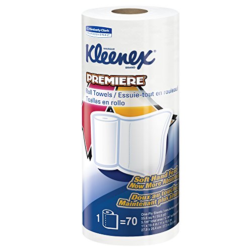 -. Feature : 1,680 perforated Kleenex towels per case (70 sheets per roll, 24 paper towel rolls per case) / Kleenex Premiere Kitchen Paper Towels are designed for excellent single-use general-purpose cleaning and drying; They're absorbent and strong, but soft enough to use on your skin / Each 1-ply sheet is 10.4" x 11" and is specially designed for durability, absorbency, and tear resistance; they're great for scrubbing and wiping up spills / The cloth-like feel lets users know this is a premium paper towel / These Kleenex towels are designed for one-at-a-time dispensing