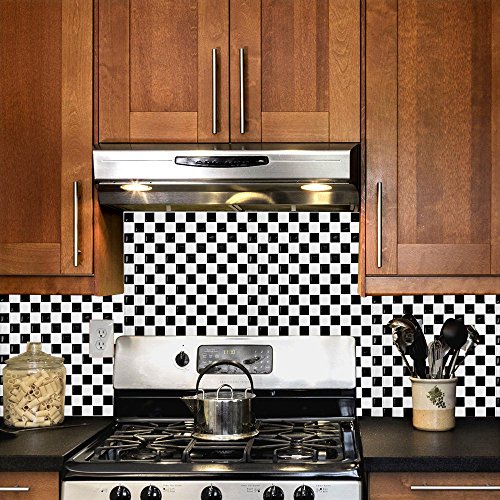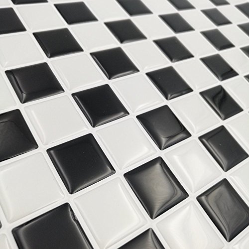 Cocotik Peel and Stick Tile 10"x10" Self-Adhesive 3D Vinyl Wall Tiles , Black and White , Pack of 6