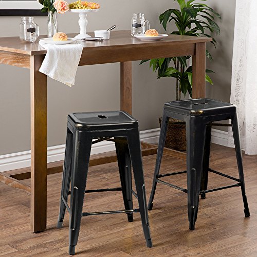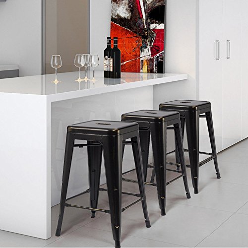 -. Title : Furmax 24'' metal stools High Backless Silver Metal Indoor-Outdoor Counter Height stackable bar Stools Black and Golden(Set of 4)