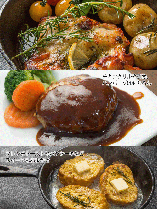 その厚さと高い蓄熱性のおかげでハンバーグやステーキなどもカンタンに火が通ります。