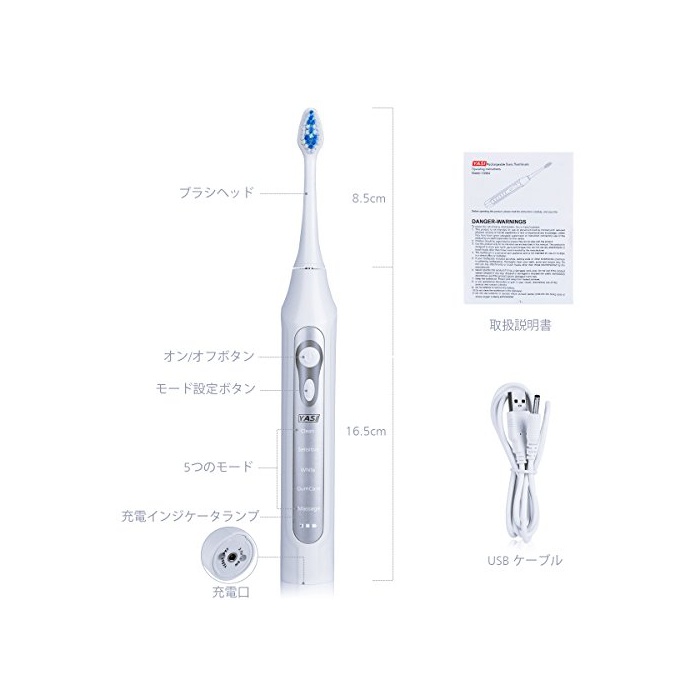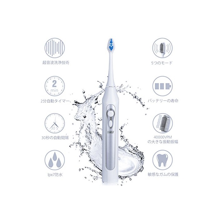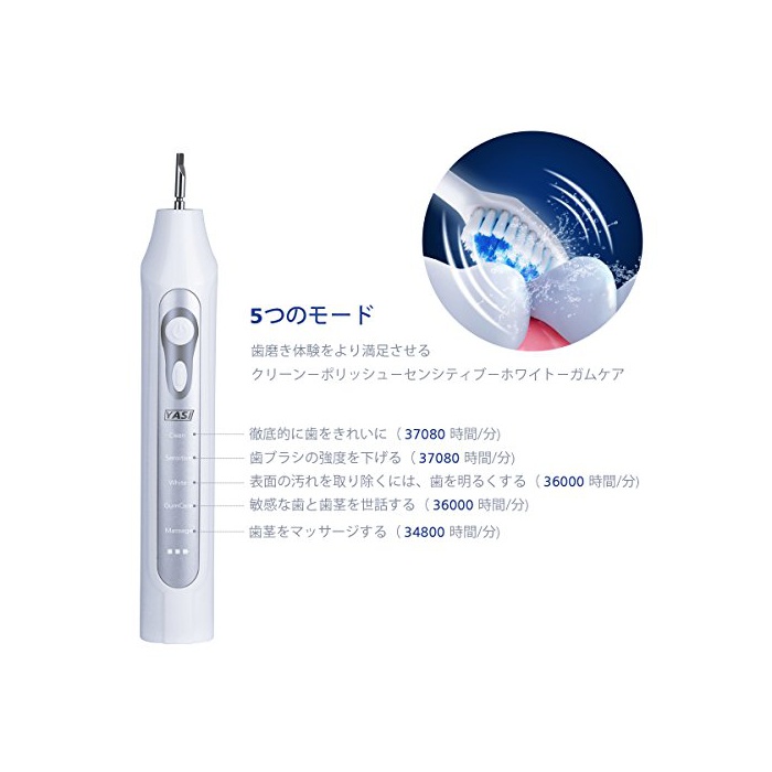 원본상품명: YASI 電動ブラシ 音波ブラシ 替ブラシ 音波式 5つモド搭載 2分の自動タイマ IPX7防水 YS964 (シルバ)