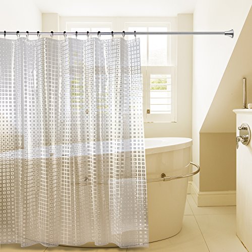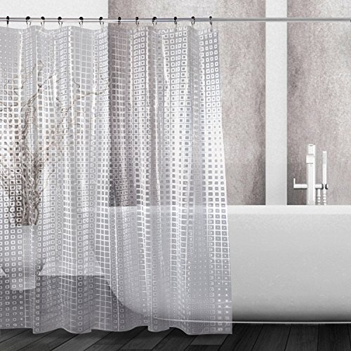 *Safe & ECO Friendly - The shower liner is made with non-toxic, chlorine free, PEVA which doesn't expose your family and the environment to harmful chemical fumes.Many low quality shower liners available on the market are made from PVC, a highly carcinogenic compound that emits toxic gas into the air which can last for 28 days.
