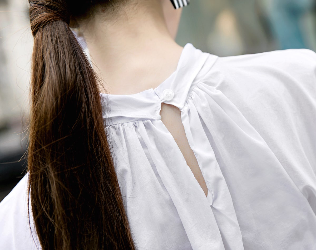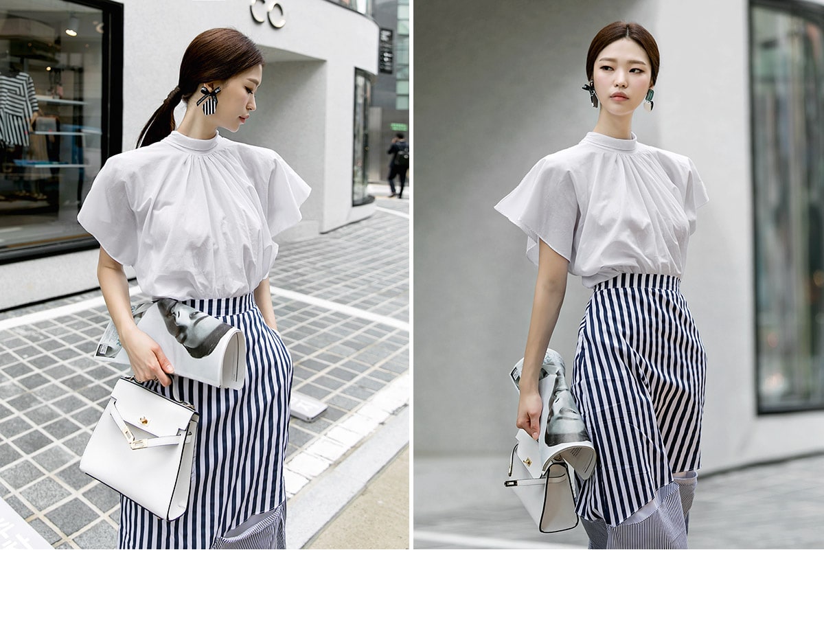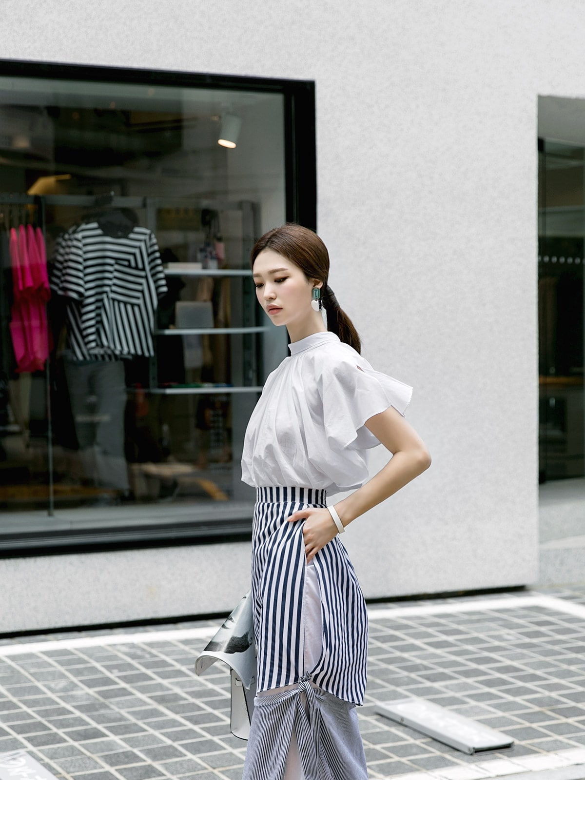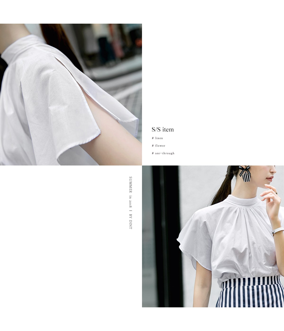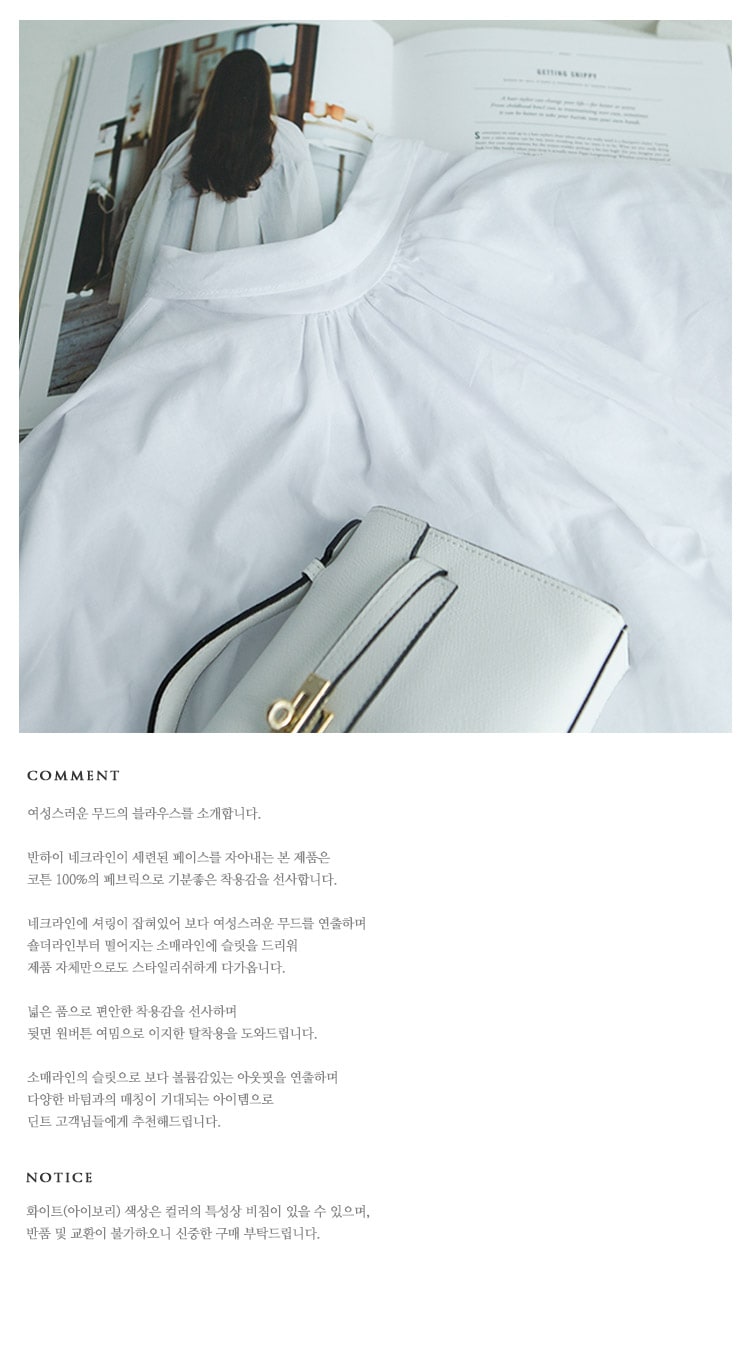 B2243 넥 셔링 소매 슬릿 블라우스 Ivory