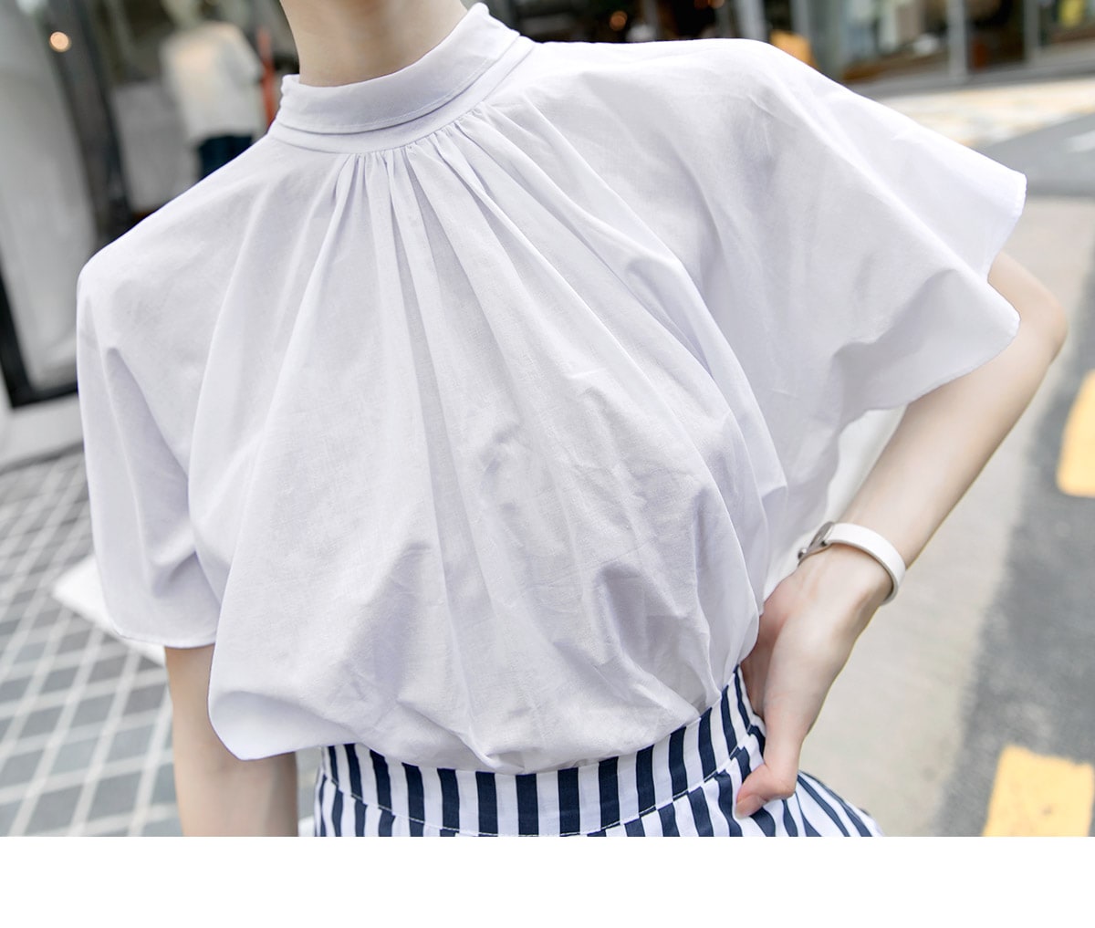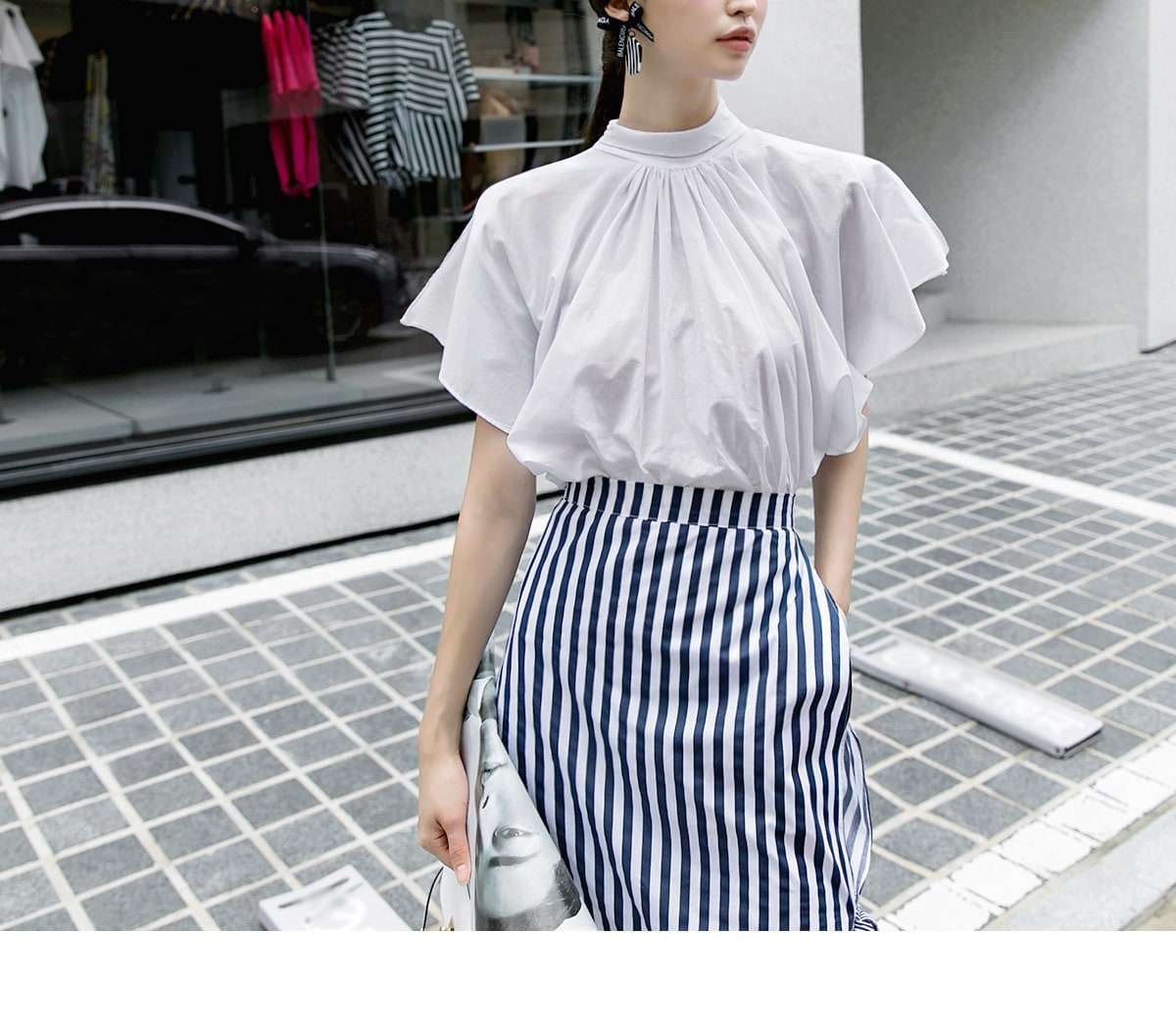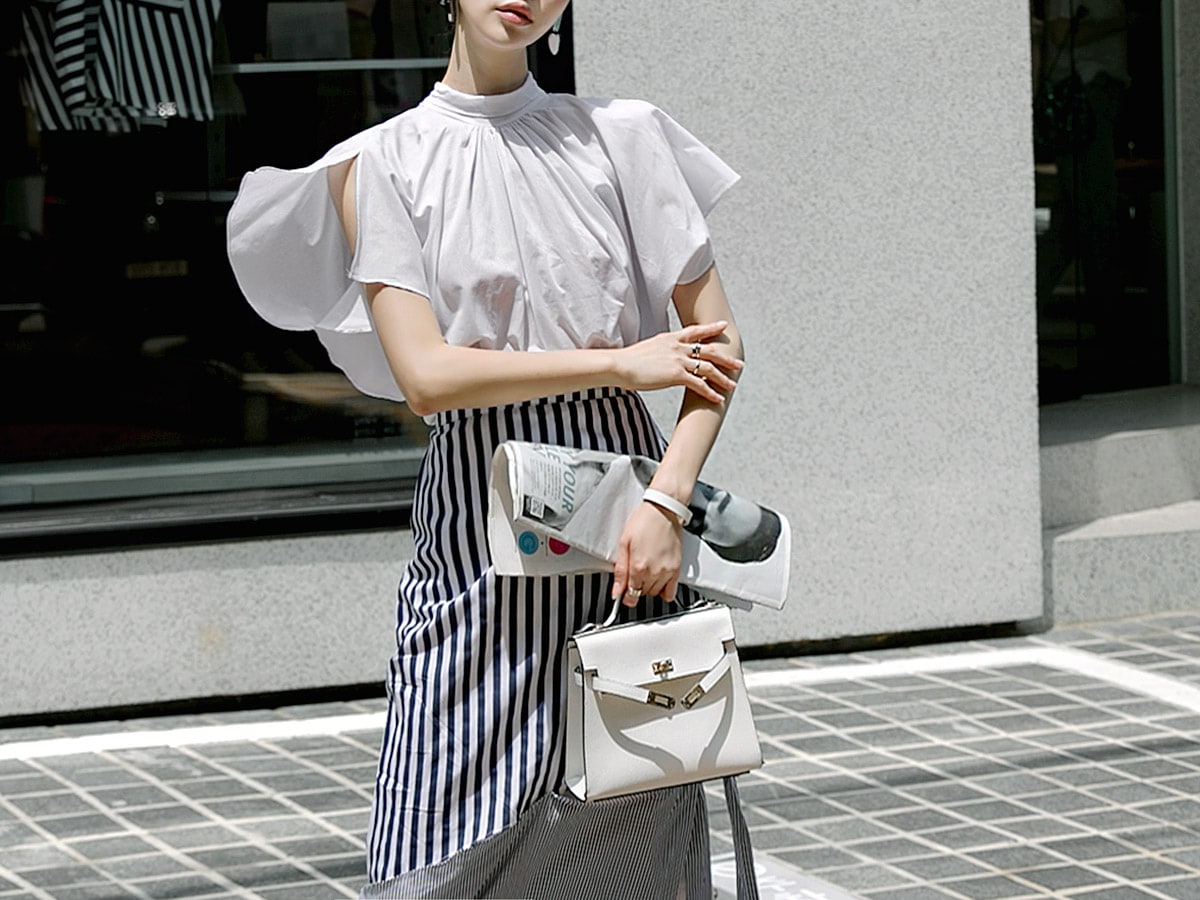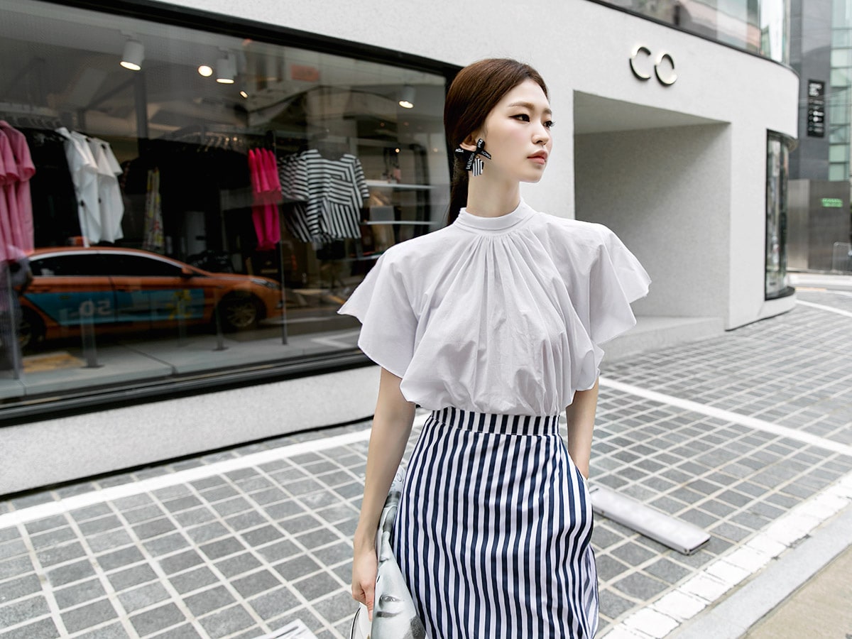 B2243 넥 셔링 소매 슬릿 블라우스 Ivory