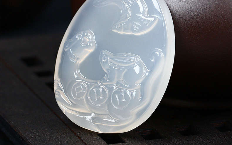 开光属羊喜兔登豹白玉髓吊坠生肖开玉兔报喜开运吊坠