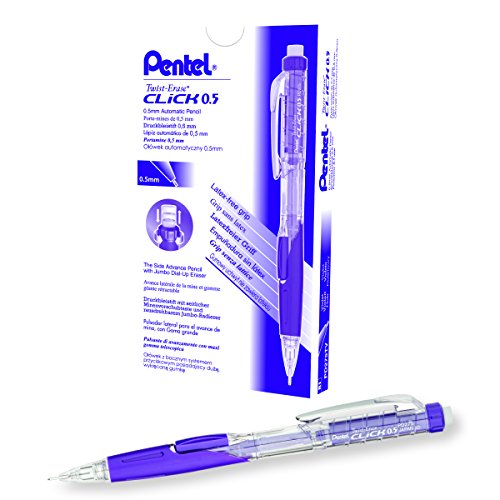 Pentel Twist-Erase CLICK Mechanical Pencil (0.5mm) Transparent Violet Barrel, Box of 12 (PD275TV)